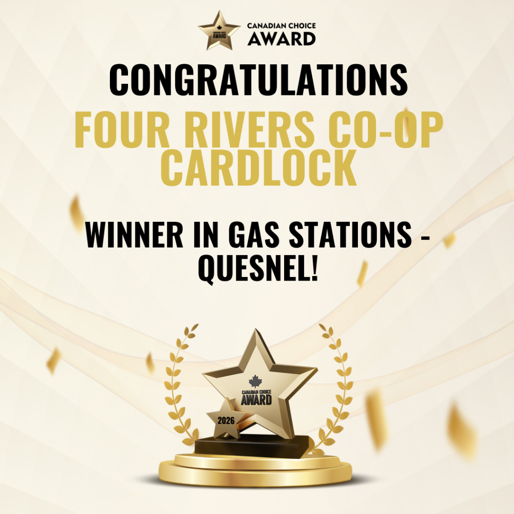We’re proud to share that Four Rivers Co-op has been recognized as a 2026 Canadian Choice Award Winner at our Quesnel Cardlock Location. This honour reflects the support of our members, customers, and communities, and the dedication of our team who work every day to serve them well. We’re grateful for this recognition and honoured to celebrate this achievement alongside the people who make it possible.